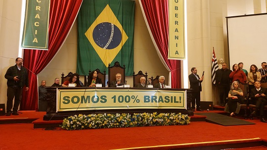 Foi ao som dos gritos de guerra: “não a tirania, soberania não se negocia” e “ou ficar a pátria livre ou morrer pelo Brasil”, que o clima no salão foi contaminado pelos discursos feitos em defesa da soberania brasileira, entre eles o de José Carlos Dias, ex-ministro da Justiça e advogado que ressaltou: “Não nos subordinaremos, nem seremos governados por vergonhosas ameaças ou pressões externas. As sanções impostas são uma afronta a autonomia do estado brasileiro, conclamamos assim: replicar o nosso grito de independência, nós estamos inaugurando um novo 7 de setembro!”