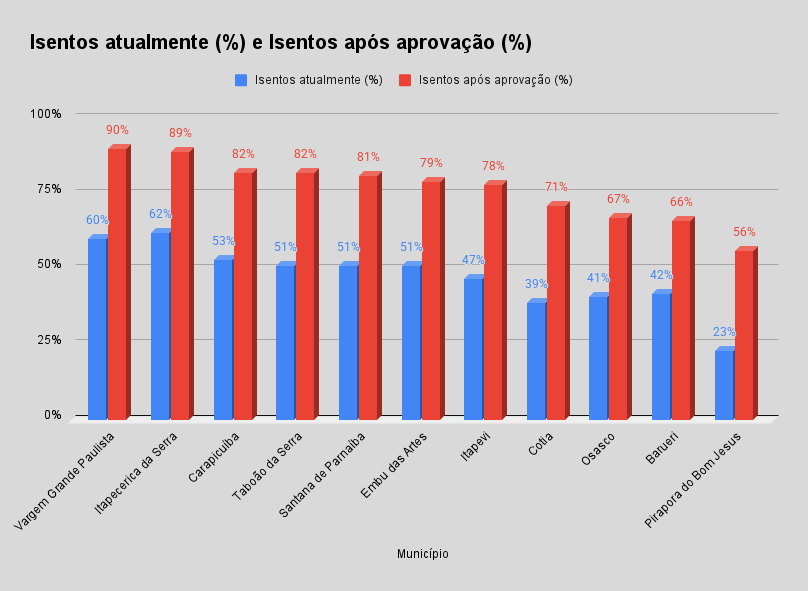 Isentos atualmente (%) e Isentos após aprovação (%) (1)