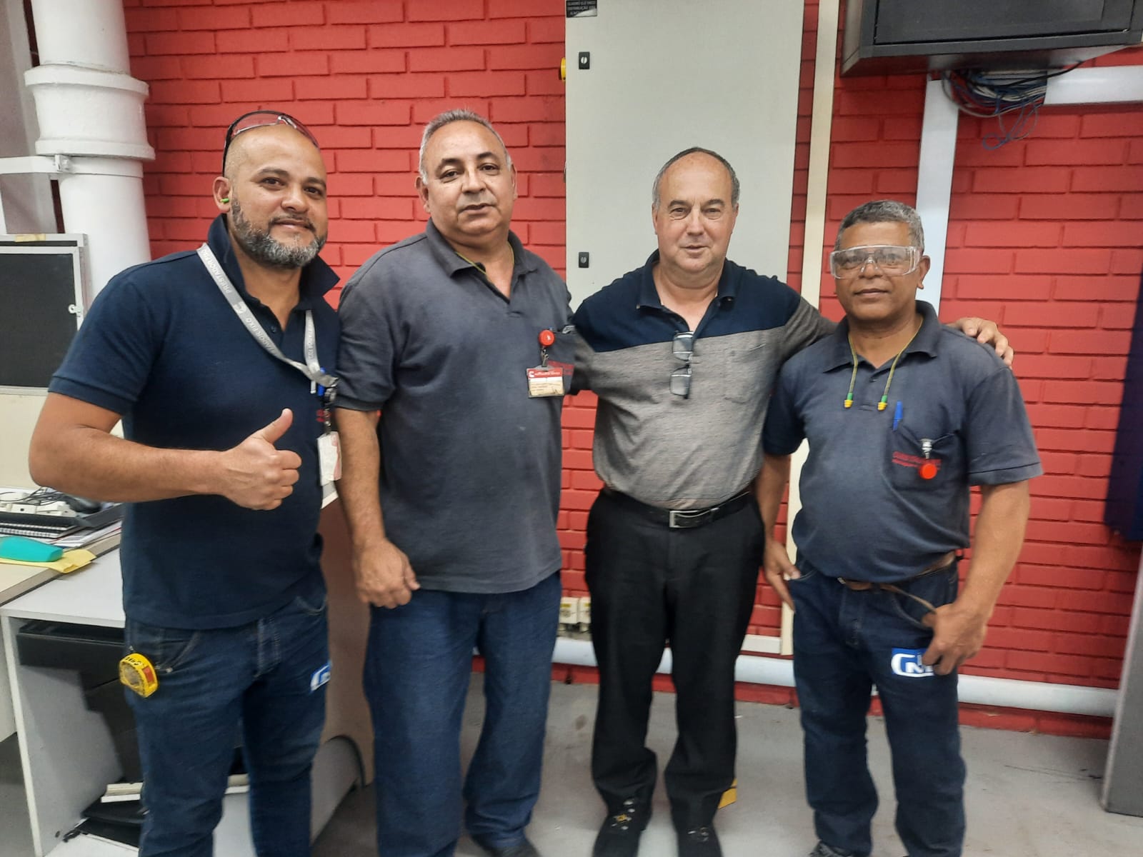 Da esquerda para a direita: Flávio (trabalhador da empresa), Geovando (titular da CIPA), Edson Cogo (diretor do Sindicato) e Milton (suplente da CIPA)