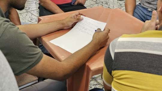 Depois da palestra, foi formado os grupos de trabalho, para os companheiros e companheiras contribuírem para a construção da pauta de reinvindicações da campanha, trazendo pautas como o fim da escala 6×1, auxilio combustível, convenio médico e odontológico e muitas outras.