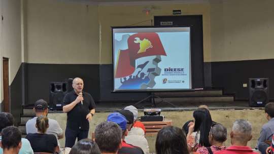 O seminário contou com a palestra de Guilherme Palmieri, técnico do Dieese (Departamento Intersindical de Estatística e Estudos Socioeconômicos) da subseção do Sindicato, que abordou o atual momento econômico e os impactos do tarifaço.