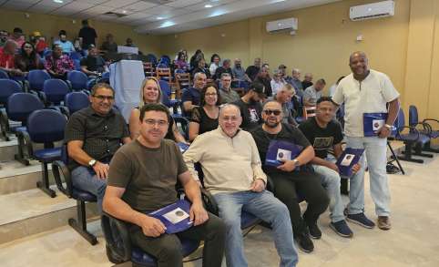 Diretoria do Sindicato no auditório para o seminário