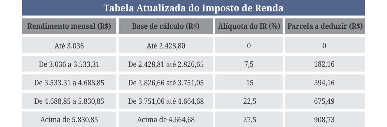 Desde 1º de maio, está valendo a isenção do IRPF (Imposto de Renda de Pessoa Física) para quem recebe até R$ 3.036 por mês, ou seja, dois salários mínimos. A classe trabalhadora segue na luta para ampliar a isenção para quem ganha até R$ 5mil por mês. A nova atualização deve ser sentida pelo contribuinte … Continue lendo Tabela do IR é atualizada