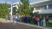 Trabalhadores da Eirich participam de assembleia presencial em frente à unidade da empresa, onde aprovaram a proposta de PLR negociada pelo Sindicato